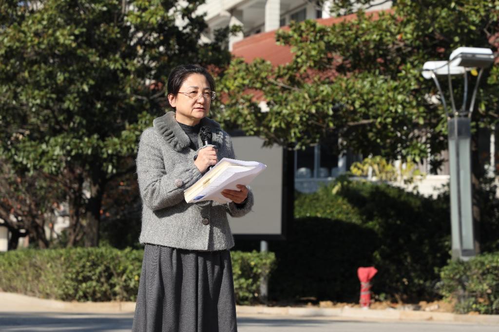 演练环节结束后,各班学生在操场整齐集合,曹璟副校长对此次演练全过程进行总结讲话。曹校长首先肯定演练成效:“此次演练学校高度重视,学工处、各系部全力支持,方案科学、组织有序。同学们通过演练掌握了逃生技能,培养了互助作风,达到了预期效果。”同时,曹校长也直接指出了演习存在的问题:“个别同学对演练重视不足,逃生动作不规范,未捂鼻、行动迟缓。”她要求全体师生引以为戒,后续务必提高思想认识,严守演练规范,切实提升应急处置能力。