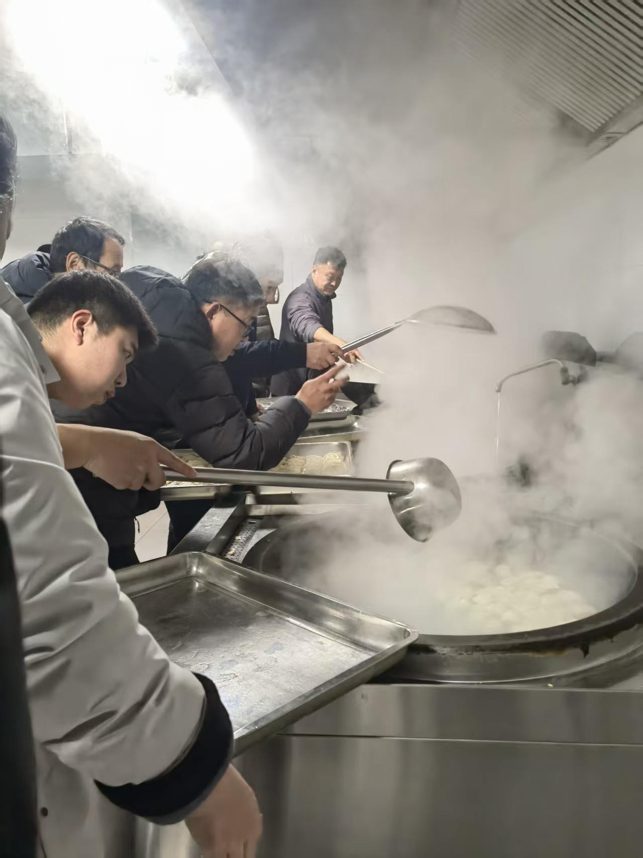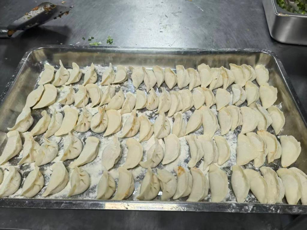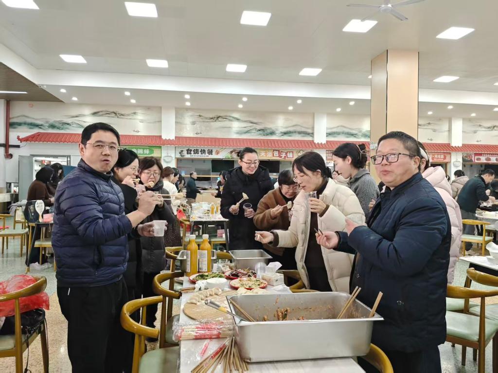 活动现场,食堂早已备齐了面粉、肉馅、蔬菜、葱姜蒜等各类食材和工具,老师们自发分工、各司其职,和面、擀皮、包饺子,一道道工序有条不紊地进行着。大家一边包饺子,一边拉家常、聊工作、谈生活,分享着日常的趣事与感悟,一张张笑脸,一个个饺子,让整个食堂充满了浓浓的“家”味。待水沸下锅,一个个饺子在锅中翻滚,不一会儿,热腾腾、香喷喷的饺子就端上了桌。老师们品尝着自己亲手包的饺子,唇齿间满是鲜香,脸上洋溢着幸福的笑容。大家相互分享,彼此称赞,在品尝美味的同时,更感受到了集体活动带来的温馨与快乐。