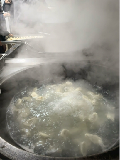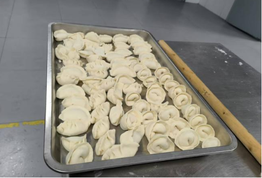 艺体系老师们纷纷亮出绝活,巧手翻飞,展现了别样的活力与协作精神。揉面团的老师力道均匀,将面团揉得光滑细腻;擀皮儿的老师手法娴熟,转眼间一张张中间厚、边缘薄的圆面皮就飞到了包饺子的老师面前。负责包饺子的老师更是各显神通,有的捏出经典的月牙饺,褶子均匀细密;有的包成饱满的元宝饺,寓意吉祥;还有的老师创意十足,捏出麦穗、小鱼等各式花样,令人赞叹。整个过程中,拌馅、调味、捏边、摆盘,每个环节都配合默契,充满了生活气息和创作乐趣。