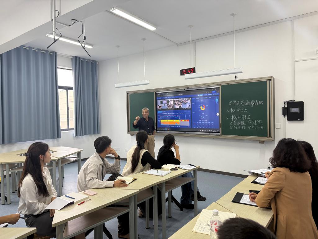 活动现场,周岩主任先深入新教师亮相课课堂,实地考察新教师在教学过程中对智能研修平台相关功能的初步应用情况,详细记录平台在教学设计优化、课堂互动增强等方面的实践效果。随后的交流研讨环节,周岩主任结合课堂观察所得,围绕智能研修平台的深度应用展开专题指导,提出了兼具操作性与创新性的实践建议。现场教师积极提问互动,就平台应用中的难点问题深入探讨。