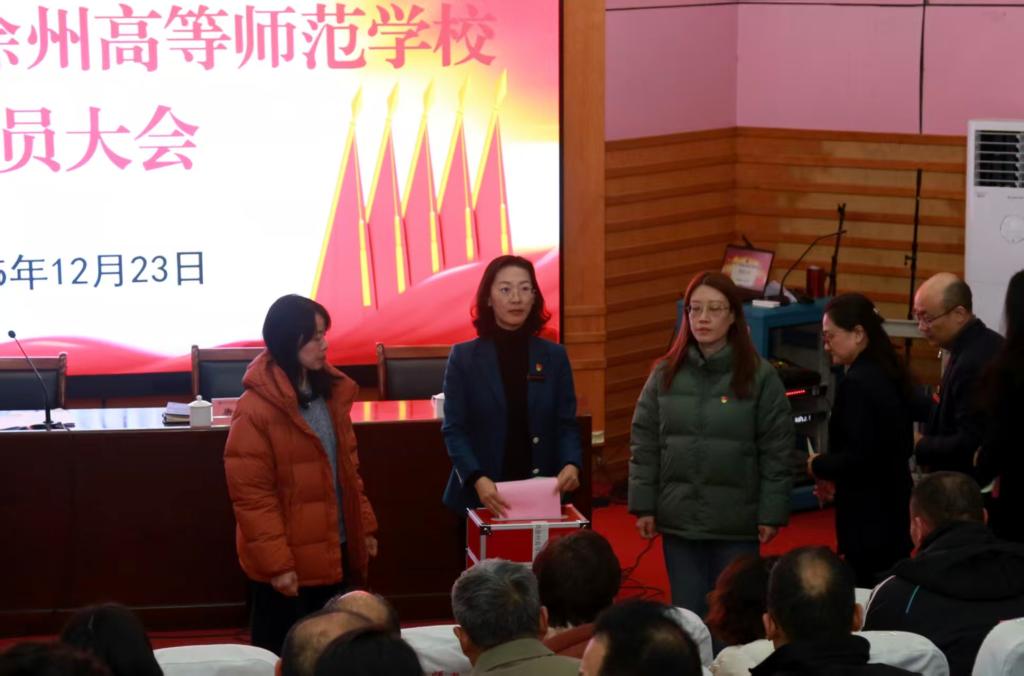 2025年12月23日,中国共产党徐州高等师范学校党员大会在报告厅(一)隆重举行,124名党员同志参加会议。