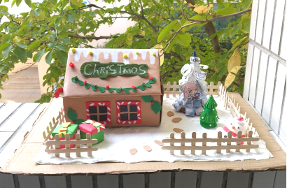 当一个个纸箱在学生们手中被裁剪、拼接,面对不同的主题和多样的装饰材料,他们仿佛踏上了一场场充满奇幻色彩的创意之旅。有的学生钟情于圣诞主题,用纸箱搭建出洋溢着“冰雪”氛围的小屋,再搭配上憨态可掬的雪人、郁郁葱葱的圣诞树等元素,将冬日的温馨瞬间定格;有的学生偏爱自然风格,让纸箱小屋被五彩斑斓的繁花簇拥,每一朵精心制作的纸艺花,都是对自然之美的细腻诠释;还有的学生打造出童话感十足的木屋,屋顶的“绿草”与“花饰”相得益彰,让童趣在创意的土壤中肆意生长。