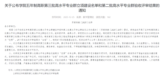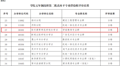 近日,江苏联合职业技术学院五年制高职第二批高水平专业群验收评审结果公布。徐州高等师范学校学前教育高水平专业群因建设成效显著,顺利通过验收。