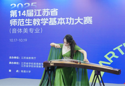 在2025年第十四届江苏省师范生教学基本功大赛(音体美专业)中,徐州高等师范学校喜获佳绩。由音乐教研组董巍主任、张济源老师共同带队,并在教研组多位优秀教师的协同指导下,艺体系学生秦裕程凭借扎实的专业功底、精湛的演奏技艺与稳定的赛场表现,在激烈竞争中脱颖而出,荣获古筝专业(小学组)第一名的优异成绩。