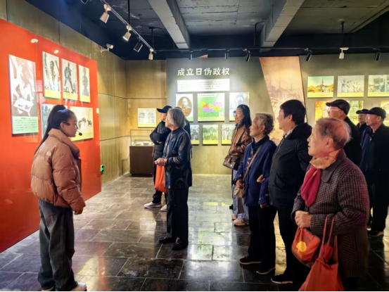 随后,大家移步至徐州会战纪念馆。该馆以1938年中国军队与民众携手抗击外侮、取得辉煌胜利的徐州会战为核心,借助人物蜡像、声光电场景复原等现代展陈技术,配合500余幅历史图片与2000余件抗战文物,真实再现了那场气壮山河的战役。老教师们沉浸于模拟战场环境中,仿佛听到炮火轰鸣,看到将士们前仆后继的身影。一位退休历史教师深情地说:“这场战役不仅是军事上的胜利,更是民族精神的彰显。我们应当永远铭记这份用鲜血铸就的荣光。”