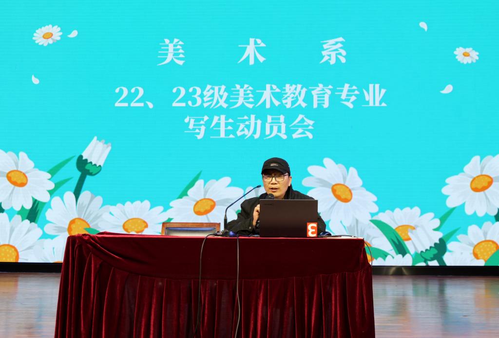 为保障2026年春季写生实践教学活动安全有序进行,美术系于2026年3月16日在学校大礼堂组织召开22、23级学生写生安全会议。会议由美术系副主题高申主持,美术系张吉鹏老师对写生具体任务和要求进行了详细布置。22、23级全体学生、班主任及相关指导教师参加会议。