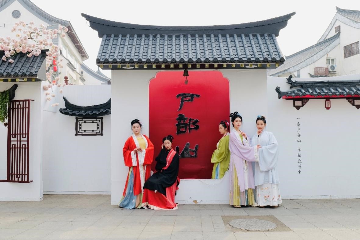 途经户部山时,错落有致的古民居、斑驳的青砖黛瓦映入眼帘。沿着蜿蜒的青石板路前行,师生们在徒步中完成了一场“历史与现实”的跨时空对话。尤为引人注目的是,部分学生身着汉服,宽袖博带、衣袂翩跹,尽显温婉雅致。他们以传统服饰为媒,将华夏礼仪之邦的衣冠美学具象呈现,既传递了中华传统服饰文化的独特魅力,也以青春姿态践行着汉风文脉的当代传承。行走在彭城七里路段,这支汉服队伍成为春日彭城一道亮丽的文化风景线。